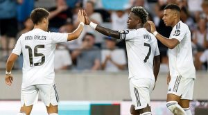 প্রথমবার রিয়াল মাদ্রিদের গৌরবময় ১০ নম্বর জার্সিতে মাঠে নেমেই নজরকাড়া পারফরম্যান্স উপহার দিলেন কিলিয়ান এমবাপ্পে। প্রতিপক্ষের জালে বল পাঠালেন দুইবার, অবদান রাখলেন সতীর্থের গোলেও। গতকাল অস্ট্রিয়ান ক্লাব ডব্লিউএসজি টিরোলকে ৪-০ গোলে উড়িয়ে দিয়ে প্রাক-মৌসুম প্রস্তুতি শেষ করল শাবি আলোনসোর দল। অস্ট্রিয়ায় অনুষ্ঠিত এই ম্যাচে শুরু থেকেই রিয়ালের দাপট ছিল চোখে পড়ার মতো। প্রায় ৭৯ শতাংশ সময় বল নিজেদের নিয়ন্ত্রণে রেখে স্প্যানিশ জায়ান্টরা গোলের জন্য ২১টি শট নেয়, যার ৯টি ছিল লক্ষ্যে। বিপরীতে স্বাগতিক দল স্রেফ একটি শট নিতে সক্ষম হয়, যা তেমন কোনো বিপদ তৈরি করতে পারেনি।