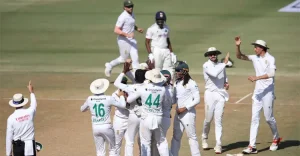 সাইমন হারমার আর কেশভ মাহারাজদের তোপের মুখে থরথর করে কেঁপেছে ভারতের তথাকথিত বিখ্যাত ব্যাটিং লাইনআপ। এক রবিন্দ্র জাদেজা যদি ৫৪ রানের ইনিংসটি না খেলতেন, তাহলে ১০০’র আগেই অলআউট হওয়া লাগতো স্বাগতিকদের। সাইমন হারমার একাই নেন ৬ উইকেট। কেশভ মাহারাজ ২টি, সেনুরান মুথুসামি ও মার্কো ইয়ানসেন নেন ১টি করে উইকেট। অর্থ্যাৎ, ৯টি উইকেটই নিয়েছে স্পিনাররা।