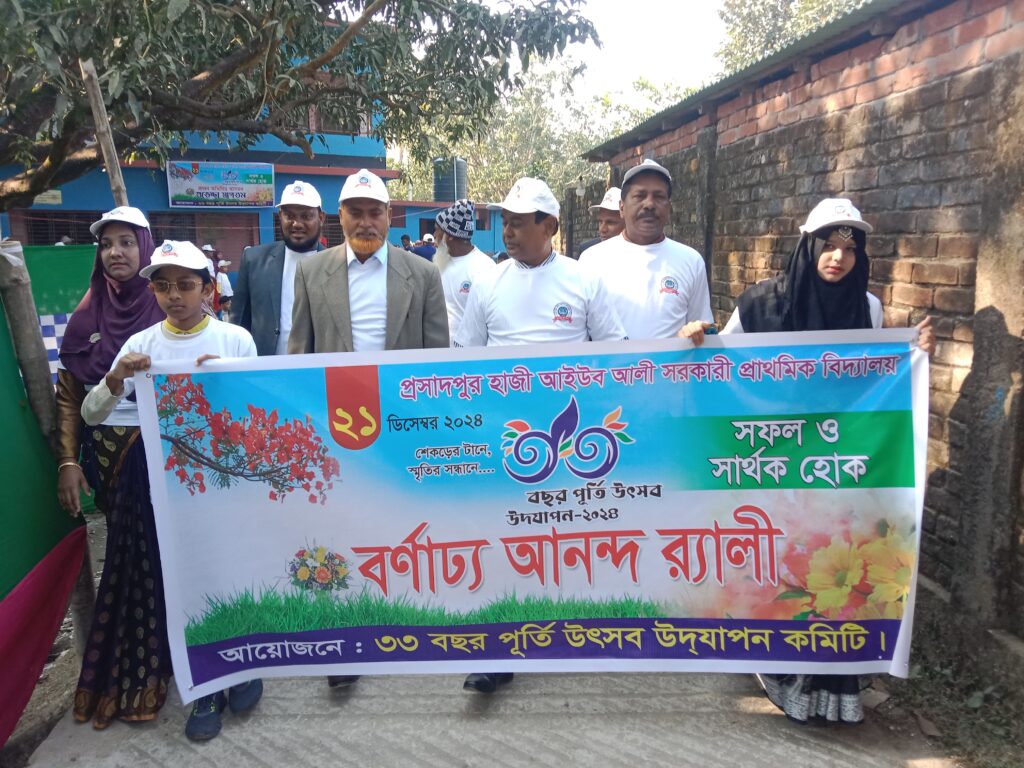 গোমস্তাপুরে হাজী আইউব আলী সরকারি প্রাথমিক বিদ্যালয়ের ৩৩ বছর পূর্তি উদযাপন চাঁপাইনবাবগঞ্জের গোমস্তাপুর উপজেলার রহনপুর পৌর এলাকার প্রসাদপুর হাজী আইউব আলী সরকারি প্রাথমিক বিদ্যালয়ের ৩৩ বছর পূর্তি উদযাপন করা হয়েছে। এ উপলক্ষে পূর্তি উদযাপন কমিটির আয়োজনে কোরআন তেলাওয়াত, জাতীয় সংগীত পরিবেশন, শোভাযাত্রা, আলোচনা সভা ও সাংস্কৃতিক অনুষ্ঠানের আয়োজন করা হয়। অনুষ্ঠানের শুরুতে কোরআন তেলওয়াত, জাতীয় পতাকা উত্তোলন করা হয়। পরে বিদ্যালয় প্রাঙ্গণ থেকে একটি শোভাযাত্রা বের করা হয়। শোভাযাত্রাটি রহনপুর শহর প্রদক্ষিণ করে একই এসে শেষ হয়। সেখানে অনুষ্ঠিত আলোচনা সভায় সভাপতিত্ব করেন ৩৩ বছর পূর্তি উদ্যাপন কমিটি আহ্বায়ক ও বিদ্যালয়ের প্রধান শিক্ষক আব্দুল ওয়াহাব। প্রধান অতিথির বক্তব্য দেন রাজশাহী কলেজের অধ্যক্ষ মো. যহুর আলী। বিশেষ অতিথির বক্তব্য দেন— একুশে পদকপ্রাপ্ত সাদা মনের মানুষ জিয়াউল হক, উপজেলা প্রাথমিক শিক্ষা কর্মকর্তা (ভারপ্রাপ্ত) সুশান্ত চন্দ্র বর্মনসহ অন্যরা। আলোচনা শেষ সাংস্কৃতিক অনুষ্ঠানের আয়োজন করা হয়।