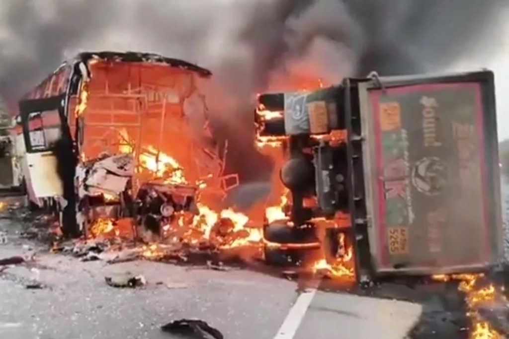 ভারতে বাস-লরির সংঘর্ষে ভয়াবহ অগ্নিকান্ডে নিহত ১৪