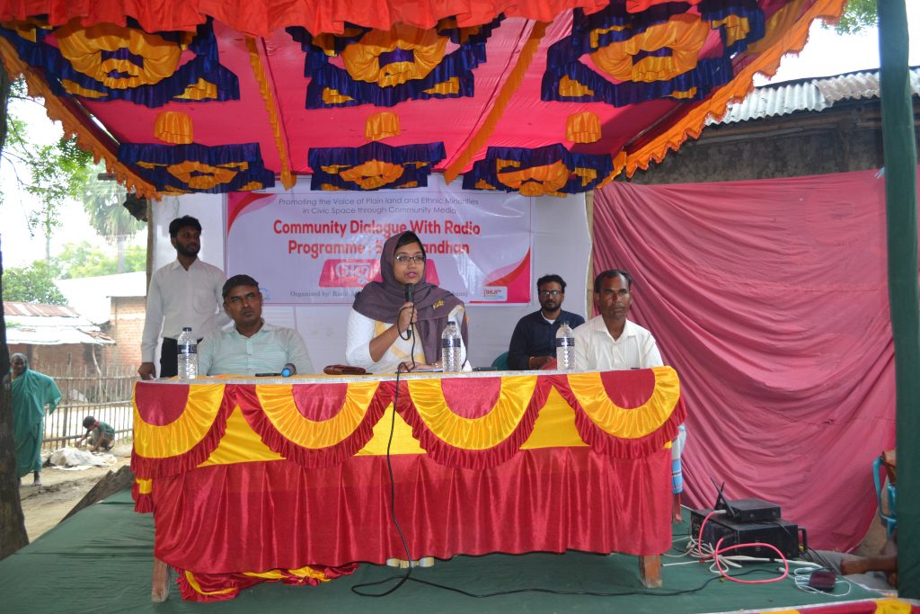 এবার গোমস্তাপুরে আদিবাসীদের নিয়ে কমিউনিটি সংলাপ চাঁপাইনবাবগঞ্জে সমতলের আদিবাসীদের সমস্যা সমাধানভিত্তিক কমিউনিটি সংলাপ ধারাবাহিকভাবে অনুষ্ঠিত হচ্ছে। ফ্রি প্রেস আনলিমিটেডের আর্থিক সহায়তায় সমষ্টির বাস্তবায়নে কমিউনিটি সংলাপগুলোর আয়োজন করছে রেডিও মহানন্দা। এরই ধারাবাহিকতায় বৃহস্পতিবার বিকেলে জেলার গোমস্তাপুর উপজেলার রহনপুর ইউনিয়নের চাঁদপুর বাহাদুর পাড়া গ্রামে আদিবাসীদের নিয়ে কমিউনিটি সংলাপ অনুষ্ঠিত হয়। এতে প্রধান অতিথি ছিলেন- উপজেলা নির্বাহী অফিসার নিশাত আনজুম অনন্যা। কমিউনিটি সংলাপে আদিবাসীরা তাদের বিভিন্ন সমস্যা তুলে ধরেন। সমস্যাগুলোর মধ্যে ছিল- গ্রামে মন্দির নির্মাণ, অরক্ষিত শ্মশানের বাউন্ডারি ওয়াল নির্মাণ, ল্যাম্পপোস্ট স্থাপন, শ্মশান পর্যন্ত রাস্তা নির্মাণ, গ্রামে ড্রেনের ব্যবস্থা, নিরাপদ পানির ব্যবস্থা করা ও আদিবাসী এলাকার সরকারি খাস পুকুরগুলো লিজ দেওয়ার ক্ষেত্রে আদিবাসীদের অগ্রাধিকার দেওয়া। এসব সমস্যা সমাধানে প্রধান অতিথির সহায়তা কামনা করেন আদিবাসী নেতৃবৃন্দ। এসময় প্রধান অতিথি সমস্যাগুলো সমাধানে সার্বিক সহযোগিতার আশ্বাস দেন। রেডিও মহানন্দার টেকনিক্যাল অফিসার রেজাউল করিমের সঞ্চালনায় সংলাপে বিশেষ অতিথি ছিলেন- সহকারী জেলা তথ্য অফিসার আব্দুল আহাদ, গ্রামের মোড়ল রনজিত মন্ডল। অন্যদের মধ্যে উপস্থিত ছিলেন- রেডিও মহানন্দার প্রযোজক নয়ন আলী, সহকারী প্রযোজক উম্মে আয়েশা সিদ্দিকা। উল্লেখ্য, প্রোমোটিং দ্য ভয়েস অব প্লেইনল্যান্ড এথনিক মাইনোরিটিজ ইন সিভিক স্পেস থ্রু কমিউনিটি মিডিয়া বিষয়ক প্রকল্পের আওতায় অনুষ্ঠিত কমিউনিটি সংলাপটি রেডিও মহানন্দায় ‘সেতু বন্ধন’ শীর্ষক অনুষ্ঠানে সম্প্রচারিত হবে। উল্লেখ্য, সমতলের আদিবাসীদের সংস্কৃতি সংরক্ষণ ও জীবনমান উন্নয়নে চাঁপাইনবাবগঞ্জে এই প্রকল্পটি বাস্তবায়ন করছে রেডিও মহানন্দা। এছাড়াও সাতক্ষীরায় রেডিও নলতা ও মৌলভীবাজারে রেডিও পল্লী কণ্ঠ এই প্রকল্পটি বাস্তবায়ন করছে এবং এই প্রকল্পে সমন্বয়ক হিসেবে কাজ করছে গণযোগাযোগ ও সাংবাদিকতা উন্নয়ন বিষয়ক সংস্থা ‘সমষ্টি’।