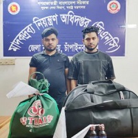 জেলা শহরে ডিএনসি’র অভিযান ফেনসিডিলসহ আটক ২ চাঁপাইনবাবগঞ্জ জেলা শহরে মাদকদ্রব্য নিয়ন্ত্রণ অধিদপ্তরের (ডিএনসি) অভিযানে ৮৮ বোতল ফেনসিডিলসহ দুজনকে আটক করা হয়েছে। আটককৃতরা হলেন- শিবগঞ্জ উপজেলার বালিয়াদিঘী মধ্যপাড়া গ্রামের মৃত আনোয়ার হোসেনের ছেলে সাইম ও চাঁপাইনবাবগঞ্জ পৌরসভার মসজিদপাড়া এলাকার আলমগীর হোসেনের ছেলে শাহীন আলম আজম। গতকাল রাতে জেলা শহরের কালীতলা এলাকায় ডিএনসির চাঁপাইনবাবগঞ্জ জেলা কার্যালয়ের সদস্যরা অভিযান চালিয়ে ফেনসিডিলসহ তাদের আটক করে। জেলা ডিএনসি’র সহকারী পরিচালক শরীফ উদ্দিন জানান- মাদকদ্রব্য নিয়ন্ত্রণ অধিদপ্তরে জেলা কার্যালয়ের ক-সার্কেলের পরিদর্শক ইলিয়াস হোসেন তালুকদারের নেতৃত্বে একটি দল গোয়েন্দা তথ্যের ভিত্তিতে শহরের কালীতলা এলাকায় অভিযান চালায়। সেখানে যাত্রীবাহী ব্যাটারিচালিত অটোরিকাশার পেছন সিটে বসা সাইমকেকে ৪০ বোতল ও শাহীন আলম আজমকে ৪৮বোতল ফেনসিডিলসহ আটক করা হয়। আজ তাদের বিরুদ্ধে মাদকদ্রব্য নিয়ন্ত্রণ আইনে সদর মডেল থানায় মামলা দায়ের করা হয়েছে।