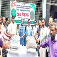 গোমস্তাপুরে কৃষি প্রণোদনার মুগ ডালের বীজ বিতরণ গোমস্তাপুরে ক্ষুদ্র ও প্রান্তিকদের মাঝে বিনামূল্যে মুগ ডালের বীজ ও রাসায়নিক সার বিতরণ কার্যক্রমের উদ্বোধন করা হয়েছে। আজ সকালে উপজেলা পরিষদ চত্বরে এই কার্যক্রমের উদ্বোধন করেন গোমস্তাপুর উপজেলা নির্বাহী অফিসার নিশাত আনজুম অনন্যা। পরে একই স্থানে অনুষ্ঠিত আলোচনা সভায় সভাপতিত্ব করেন কৃষি কর্মকর্তা তানভীর আহমেদ সরকার। বক্তব্য দেন উপজেলা নির্বাহী অফিসার নিশাত আনজুম অনন্যা, সহকারী কমিশনার ভূমি কৃষ্ণ চন্দ্র। এ সময় উপস্থিত ছিলেন উপজেলা উদ্ভিদ সংরক্ষন কর্মকর্তা সেরাজুল ইসলাম, উপসহকারী কৃষি কর্মকর্তা রইসউদ্দীন,রাকীব উদ্দীন, গানিউল ইসলাম, ইব্রাহিম খলিল, আব্দুল আওয়াল, মোমিনুল ইসলাম,শেখ আল ফুয়াদসহ উপকারভোগী কৃষকরা। উল্লখ্য, ২০২৪-২৫ অর্থ বছরের খরিফ-১ মৌসুমে গ্রীষ্মকালীন মুগ ফসলের আবাদ ও উৎপাদন বৃদ্ধির লক্ষে উপজেলার ১১৫ জন ক্ষুদ্র ও প্রান্তিক কৃষককে ১ বিঘা জমির জন্য ৫ কেজি করে মুগ বীজসহ ১৫ কেজি রাসায়নিক সার প্রণোদনা হিসেবে বিতরণ করা হয়।