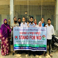 গোমস্তাপুরে জাতীয় পরিচয়পত্র সেবা নির্বাচন কমিশনের অধিনে থাকার দাবিতে মানববন্ধন ও অবস্থান কর্মসূচি