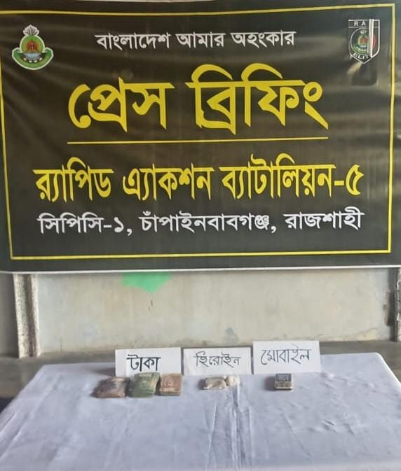চাঁপাইনবাবগঞ্জে পৃথক ২ টি অভিযানে হেরোইনসহ ৩ জন মাদক কারবারী গ্রেফতার