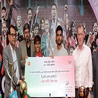 ক্রীড়া মন্ত্রণালয়ের পুরস্কার বুঝে পেলেন সাফজয়ীরা টানা দ্বিতীয় সাফ শিরোপা জয় করে ফেরার পরই বাংলাদেশ নারী ফুটবল দলকে ১ কোটি টাকা পুরস্কার দেয়ার ঘোষণা করেছিলেন যুব ও ক্রীড়া উপদেষ্টা আসিফ মাহমুদ সজিব ভূঁইয়া। সেই চেক আজ হাতে পেয়েছেন নারী ফুটবলাররা। প্রত্যেকে পেয়েছেন ৩ লাখ ১২ হাজার ৫০০ টাকা করে। খেলোয়াড়, কোচিং স্টাফ এবং অফিসিয়ালসহ মোট ৩২ জনের মধ্যে এই ১ কোটি টাকা সমবণ্টন হয়েছে। ক্রীড়া উপদেষ্টা আসিফ মাহমুদ এক ফেসবুক স্ট্যাটাস দিয়ে বিষয়টি জানিয়েছেন। জাতীয় ক্রীড়া পরিষদ বাংলাদেশ ফুটবল ফেডারেশনের কাছে ৩২ জনের জন্য ৩২ টি পৃথক চেক ইস্যু করেছে। চেকগুলো পাওয়ার পর ফেডারেশনকে জাতীয় ক্রীড়া পরিষদের কাছে প্রাপ্তি স্বীকারপত্র প্রেরণ করতে বলা হয়েছে।