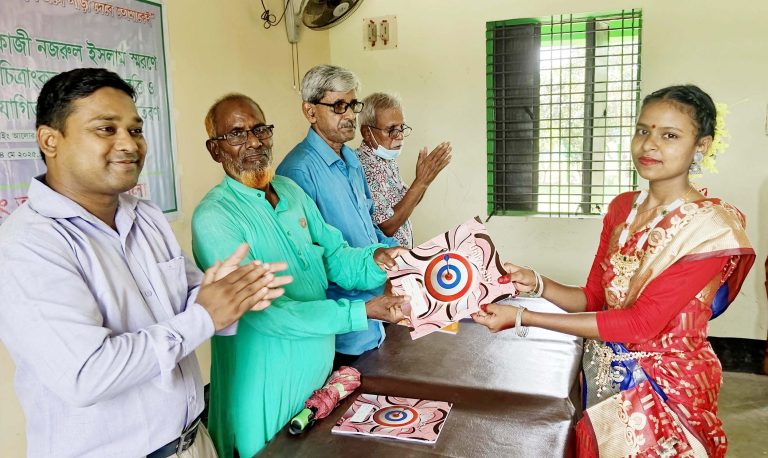 আলোর পাঠাশালায় জাতীয় কবির জন্মবার্ষিকী উপলক্ষে নানা কর্মসূচি জাতীয় কবি কাজী নজরুল ইসলামের জন্মবার্ষিকী উদযাপন উপলক্ষে চিত্রাংকন, কুইজ, কবিতা আবৃত্তি প্রতিযোগিতা, পুরস্কার বিতরণ, আলোচনা ও সাংস্কৃতিক অনুষ্ঠান শনিবার অনুষ্ঠিত হয়েছে। বাবুডাইং আলোর পাঠশালার শিক্ষার্থীরা এইসব কর্মসূচিতে অংশগ্রহণ করেন। রাজশাহীর গোদাগাড়ী উপজেলার মোহনপুর ইউনিয়নের বাবুডাইং গ্রামে অবস্থিত বিদ্যালয়ে এসবের আয়োজন করা হয়। সকাল সাড়ে ১০টায় জাতীয় সংগীতের মধ্য দিয়ে শুরু হয় অনুষ্ঠান। এরআগে প্রাক-প্রাথমিক থেকে দ্বিতীয় শ্রেণির শিক্ষার্থীদের নিয়ে ইচ্ছেমত বিষয় নিয়ে অনুষ্ঠিত হয় চিত্রাংকন প্রতিযোগিতা। জাতীয় সংগীতের পর তৃতীয় থেকে পঞ্চম শ্রেণির শিক্ষার্থীদের নিয়ে অনুষ্ঠিত হয় কবিতা আবৃত্তি প্রতিযোগিতা। তৃতীয় থেকে পঞ্চম শ্রেণির কবিতা আবৃত্তির বিষয় ছিল যথাক্রমে কাজী নজরুল ইসলামের লেখা আমি হব, লিচু চোর ও সংকল্প কবিতা। অন্যদিকে ষষ্ঠ ও সপ্তম শ্রেণি এবং অষ্টম থেকে দশম শ্রেণির শিক্ষার্থীদের নিয়ে দুটি ক্যাটাগরিতে অনুষ্ঠিত হয় কুইজ প্রতিযোগিতা। দুপুর ১২টায় শুরু হয় আলোচনা, পুরস্কার বিতরণ ও সাংস্কৃতি অনুষ্ঠান। উদ্বোধনী নৃত্য পরিবেশন করেন চাঁপাইনবাবঞ্জে শিল্পকলা একাডেমির নৃত্য শিল্পী রামিজ আহমেদ অন্তর। বিদ্যালয় পরিচালনা কমিটির (এসএমসি) সভাপতি জহিরুল ইসলামের সভাপতিত্বে অনুষ্ঠানে সূচনা বক্তব্য দেন চাঁপাইনবাবগঞ্জে প্রথম আলোর নিজস্ব প্রতিবেদক আনোয়ার হোসেন, এসএমসি কমিটির সদস্য বীর মুক্তিযোদ্ধা মো. সুজারুদ্দিন, বিদ্যালয়ের প্রধান শিক্ষক আলী উজ্জামান নূর, রামিজ আহমেদ অন্তর। কাজী নজরুলের ‘নারী’ কবিতাটি আবৃত্তি ও ইসলামিক গজল পরিবেশন করেন সিনিয়র শিক্ষক শিরিনা খাতুন। শিক্ষার্থীদের মধ্যে কবিতা আবৃত্তি করেন উম্মে হাবিবা, মরিয়ম খাতুন, সাদিয়া খাতুন, মুসলিমা খাতুনসহ অন্যরা। নজরুলের লেখা হলুদ গাঁদার ফুল গানে নাচ পরিবেশন করেন নন্দিনী সাইচুরি ও সুলেখা টুডু। রাঙামাটির পথে লো গানে নাচ পরিবেশন করে সুরমিলা হাঁসদা, সোনালি হাঁসদা, মৌমিতা হাঁসদা, ববিতা সাইচুরি, রিমিকা সাইচুরি, গীতা মুরমু। নজরুল রচিত রণসংগীতে ডিসপ্লে পরিবেশন করে মরিয়ম ও তার দল। অনুষ্ঠান সঞ্চালনা করেন সিনিয়র শিক্ষক লুইশ মুর্মু। অনুষ্ঠানে বক্তারা বলেন, কাজী নজরুল শুধু আমাদের জাতীয় কবিই নন। তিনি ছিলেন বিপ্লবের প্রতীক। সাম্যের প্রতীক। তাঁর রচিত গান, কবিতা যুগে যুগে বিপ্লবীদের অনুপ্রেরণা যুগিয়েছে। অধিকার আদায়ের আন্দোলনগুলোতে তাঁর বাণী সকলের মুখে মুখে শোনা যায় এখনও। তিনি আমাদের চেতনার মাঝে লুকিয়ে রয়েছেন। নজরুলের আদর্শকে বুকে লালন করতে পারলে সমাজ থেকে অনাচার ও বৈষম্য দূ