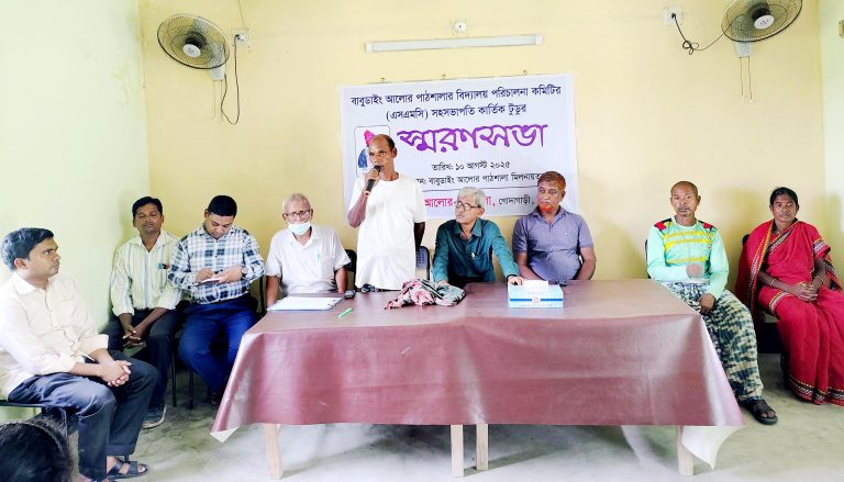 বাবুডাইংয়ে কার্তিক টুডুর স্মরণসভা রাজশাহীর গোদাগাড়ী উপজেলার বাবুডাইং আলোর পাঠশালার বিদ্যালয় পরিচালনা কমিটির সহসভাপতি কার্তিক টুডুর স্মরণে রবিবার স্মরণসভা অনুষ্ঠিত হয়েছে। দুপুর ১২টায় বিদ্যালয়ের মিলনায়তনে এ সভা অনুষ্ঠিত হয়। সভার শুরুতে কার্তিক টুডুর প্রতি শ্রদ্ধা জানিয়ে এক মিনিট নীরবতা পালন করা হয়। কমিটির সভাপতি জহিরুল ইসলামের সভাপতিত্বে অনুষ্ঠিত সভায় স্মৃতিচারণ করে বক্তব্য দেন— চাঁপাইনবাবগঞ্জে প্রথম আলোর নিজস্ব প্রতিবেদক আনোয়ার হোসেন, বিদ্যালয়ের প্রধান শিক্ষক আলী উজ্জামান নূর, গ্রাম্য মোড়ল সাইদুর রহমান, রুমালি হাঁসদা, লগেন সাইচুরি, প্রয়াতের ছেলে বিশ্বনাথ টুডু, মেয়ে ও বাবুডাইং আলোর পাঠশালার শিক্ষার্থী সাবিত্রী টুডু, বিদ্যালয়ের সহকারী প্রধান শিক্ষক শংকর চন্দ্র দাস, সিনিয়র শিক্ষক লুইশ মুর্মু, শিক্ষার্থী বৃষ্টি মুরমু প্রমূখ। অনুষ্ঠান সঞ্চালনা করেন সিনিয়র শিক্ষক সাঈদ মাহমুদ। উল্লেখ্য, কার্তিক টুডু গত ১৯ জুলাই নিজ বাড়িতে মারা যান।