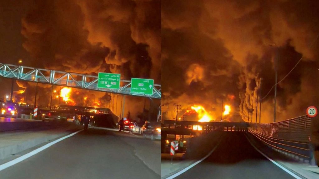 জ্বলছে তেলের ডিপো, তেহরানের রাস্তায় আগুনের নদী