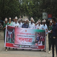 চাঁপাইনবাবগঞ্জে জুলাই পুনর্জাগরণের লক্ষে পদযাত্রা চাঁপাইনবাবগঞ্জে জুলাই পুনর্জাগরণ অনুষ্ঠানমালার অংশ হিসেবে ওমেন্স ডে পালিত হয়েছে। এ উপলক্ষে জেলা প্রশাসন পদযাত্রার আয়োজন করে। আজ সকালে জেলা প্রশাসকের কার্যালয়ের সামনে থেকে পদযাত্রাটি শুরু হয়ে বিভিন্ন সড়ক প্রদক্ষিণ করে গ্রিন ভিউ স্কুলের সামনে শেষ হয়। পদযাত্রায় নেতৃত্ব দেন জেলা প্রশাসক আব্দুস সামাদ। এ সময় পুলিশ সুপার রেজাউর করিম, জেলা পরিষদের প্রধান নির্বাহী কর্মকর্তা আফাজ উদ্দিন, স্থানীয় সরকার শাখার উপপরিচালক উজ্জ্বল কুমার ঘোষ, অতিরিক্ত জেলা প্রশাসক (সার্বিক) নাকিব হাসান তরফদার, অতিরিক্ত জেলা জেলা প্রশাসক (রাজস্ব) ইকতেখারুল ইসলাম, অতিরিক্ত জেলা ম্যাজিস্ট্রেট আনিসুর রহমান, অতিরিক্ত জেলা প্রশাসক (শিক্ষা ও আইসিটি) সালমা আক্তারসহ সরকারি বিভিন্ন দপ্তরের প্রধান, শিক্ষক-শিক্ষার্থীরা। অন্যদিকে, বিকেলে জেলা শহরের ফুড অফিস মোড়ে ‘জুলাই শহিদ স্মৃতিস্তম্ভ’ নির্মাণ কাজের ভিত্তিপ্রস্তর উদ্বোধন করা হয়।