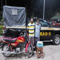 সুন্দরপুরে গাঁজাসহ গ্রেপ্তার ২ চাঁপাইনবাবগঞ্জে গাঁজাসহ দুজনকে গ্রেপ্তার করেছে র্যাব। গত মঙ্গলবার রাত ১০টার দিকে জেলার সদর উপজেলার সুন্দরপুর ইউনিয়নের কালীনগর এলাকা থেকে তাদের গ্রেপ্তার করা হয়। গ্রেপ্তারকৃতরা হলেন— পারকালীনগর গ্রামের মৃত আলফাজ উদ্দিনের ছেলে মো. নাসির উদ্দিন (৫৬) ও লক্ষ্মীনারায়ণপুর গাজীপাড়া গ্রামের মৃত আবুল হোসেনের ছেলে মো. বাদশা মিয়া (৫০)। বুধবার এক সংবাদ বিজ্ঞপ্তিতে র্যাব এই তথ্য জানিয়েছে। সংবাদ বিজ্ঞপ্তিতে র্যাব আরো জানায়, কালীনগর গ্রামে কতিপয় ব্যক্তি মাদকদ্রব্য কেনাবেচার জন্য জন্য অবস্থান করার সংবাদ পেয়ে র্যাব-৫, চাঁপাইনবাবগঞ্জ ক্যাম্পের একটি দল সেখানে অভিযান চালায়। অভিযানে ৯৫০ গ্রাম গাঁজা ও একটি নম্বরবিহীন মোটরসাইকেলসহ নাসির উদ্দিন ও বাদশা মিয়াকে গ্রেপ্তার করা হয়।
