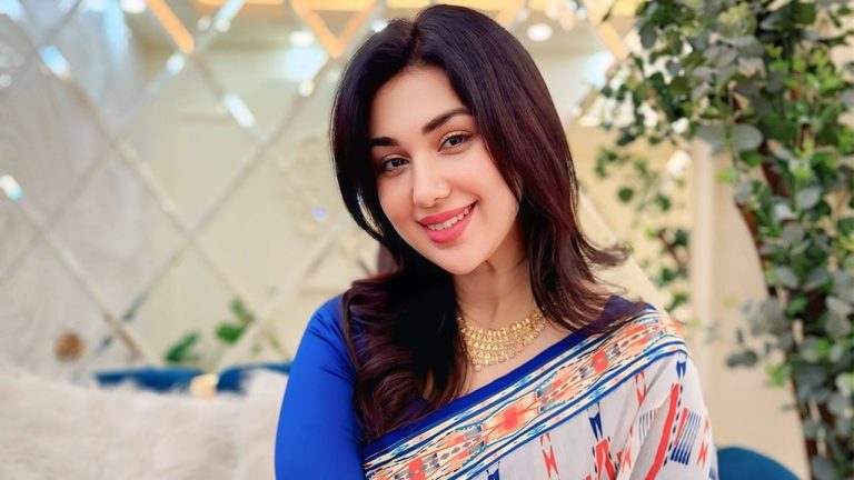 শাড়ি-রঙিন চুড়িতে বৈশাখী সাজে মিম ঢাকায় সিনেমার চিত্রনায়িকা...