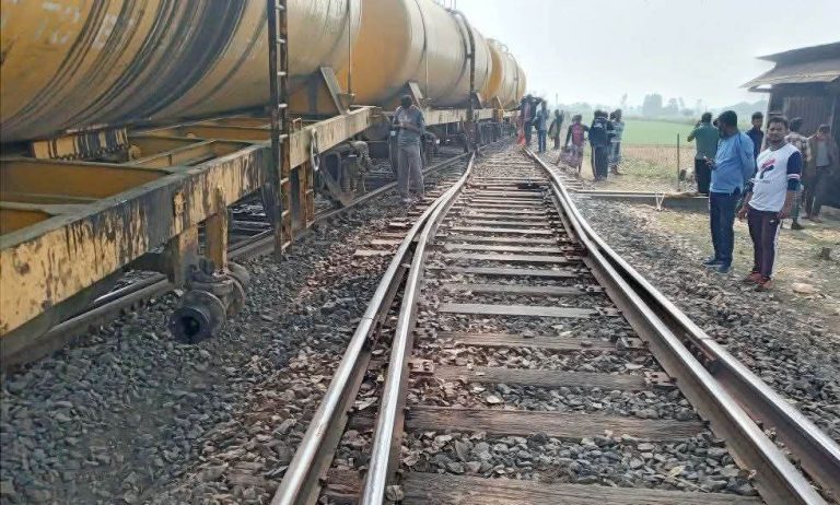 আমনুরা জংশনে তেলবাহী দুই ওয়াগান...